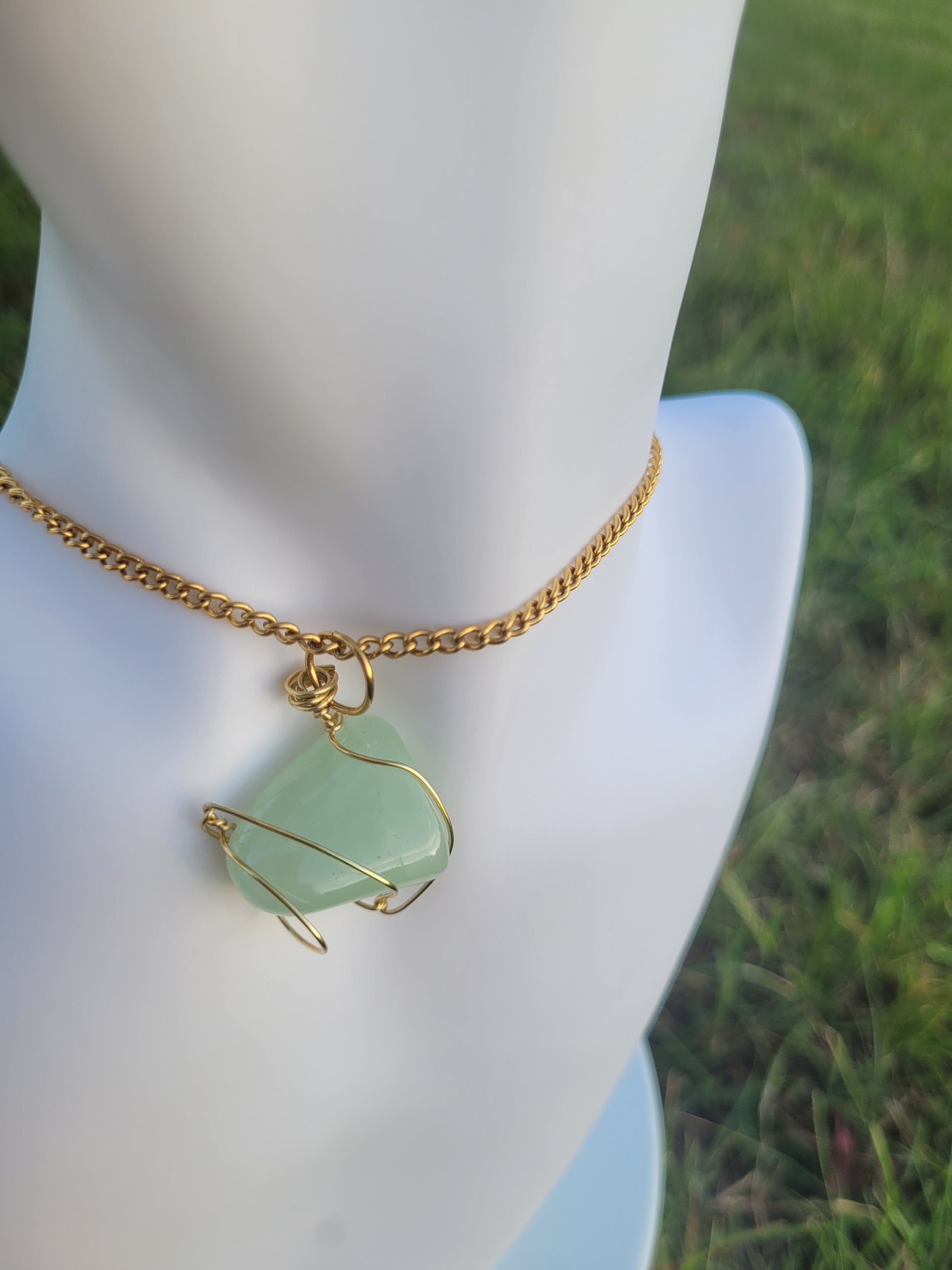 GREEN MOSS AGATE CHOKER, GOLD- JEMZI LONDON