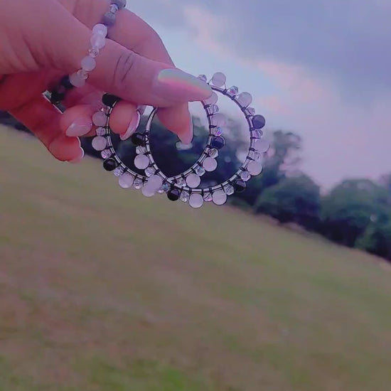 ROSE QUARTZ & BLACK TOURMALINE HOOP EARRINGS- JEMZI LONDON